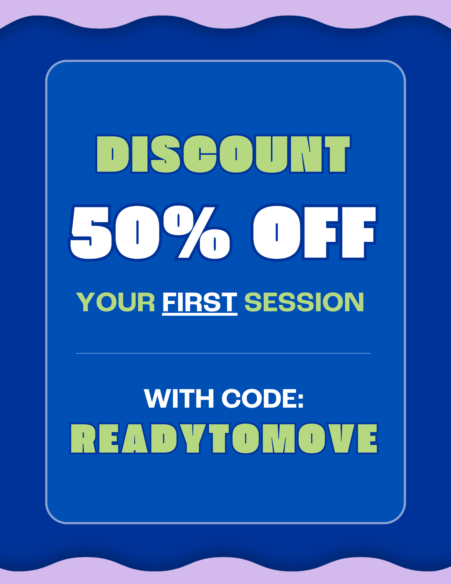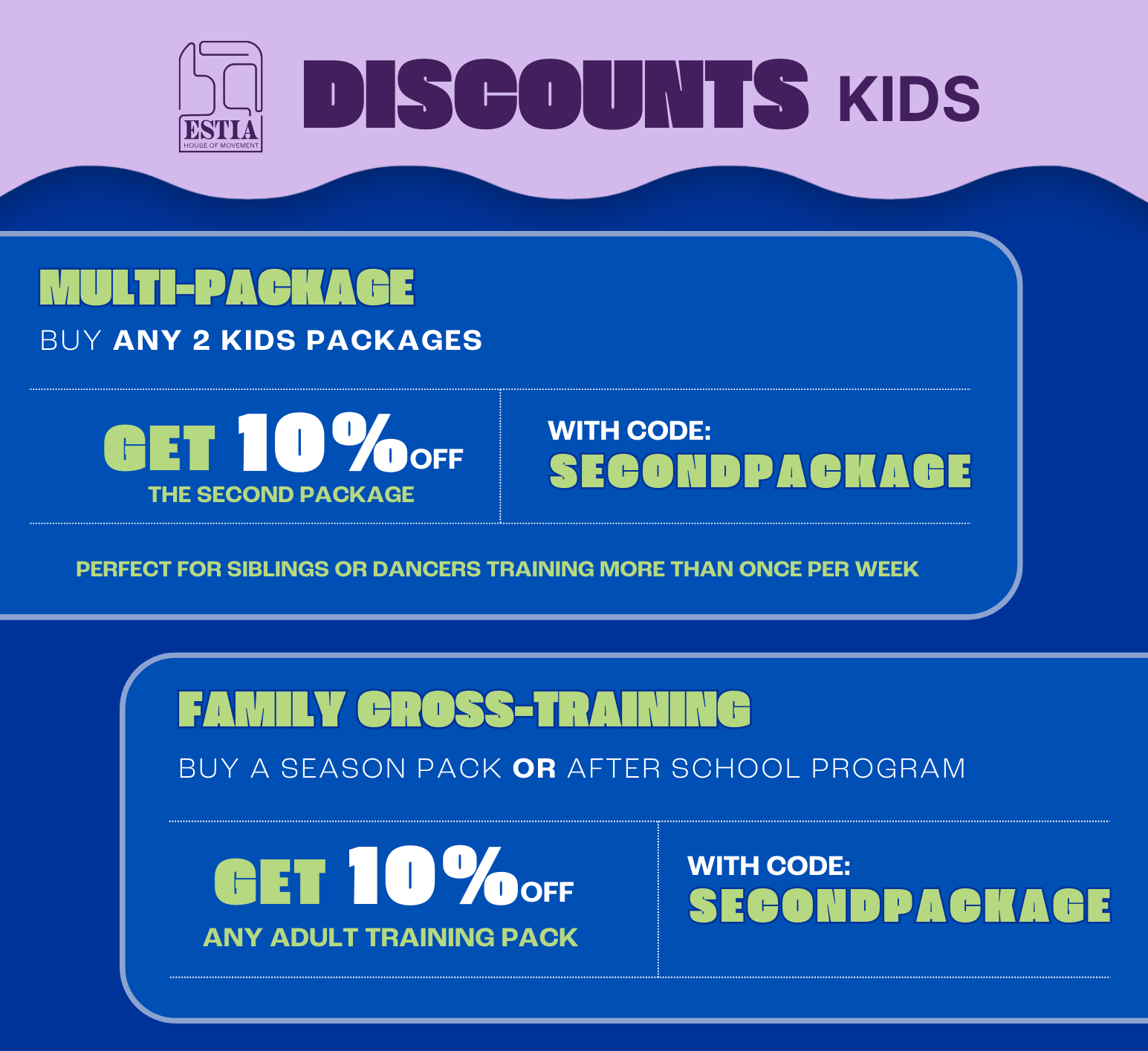 Get 50% off your FIRST Session Book Now! KIDS Class Pack Discounts Book Now! ADULT Class Packs Discounts Book Now!